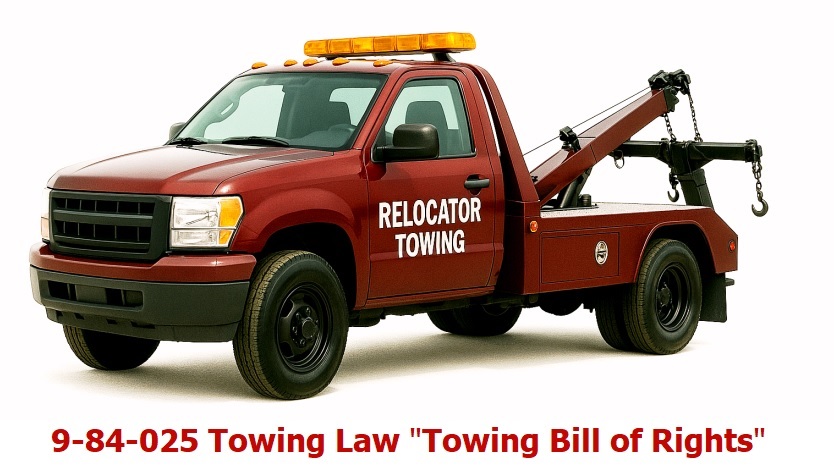 The 9-84-025 Towing Law was created to guarantee a “Towing bill of Rights” to protect vehicle owners.